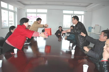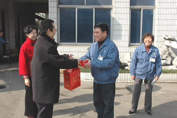 2007年春節(jié)剛過,公司領(lǐng)導(dǎo)班子深入各投資企業(yè)開展慰問活動。正要出發(fā),市經(jīng)貿(mào)委主任蔡惠中一行上門慰問