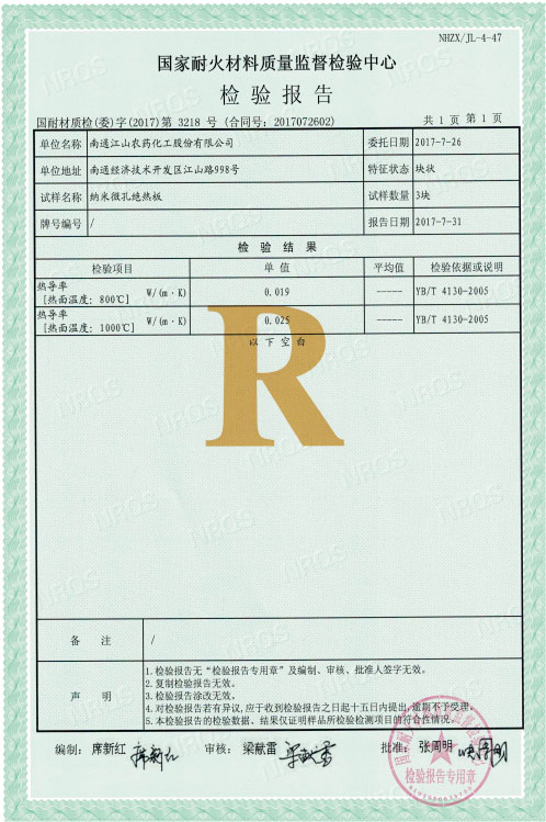 國家耐火材料質(zhì)量監(jiān)督檢驗(yàn)中心檢測報(bào)告