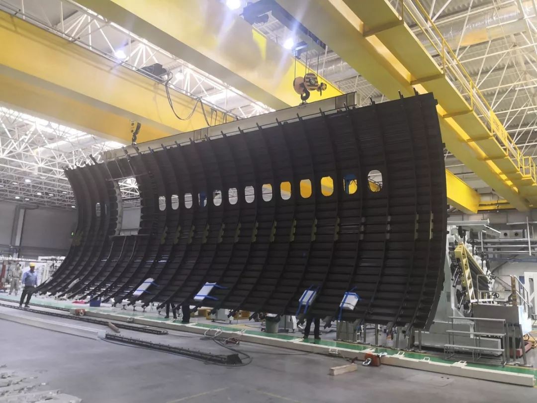 2018年12月26日,CR929項目復合材料前機身攻關全尺寸筒段(15米×6米)順利實現(xiàn)總裝下線,標志著CR929項目復材結(jié)構(gòu)研制向前邁出了重要一步。