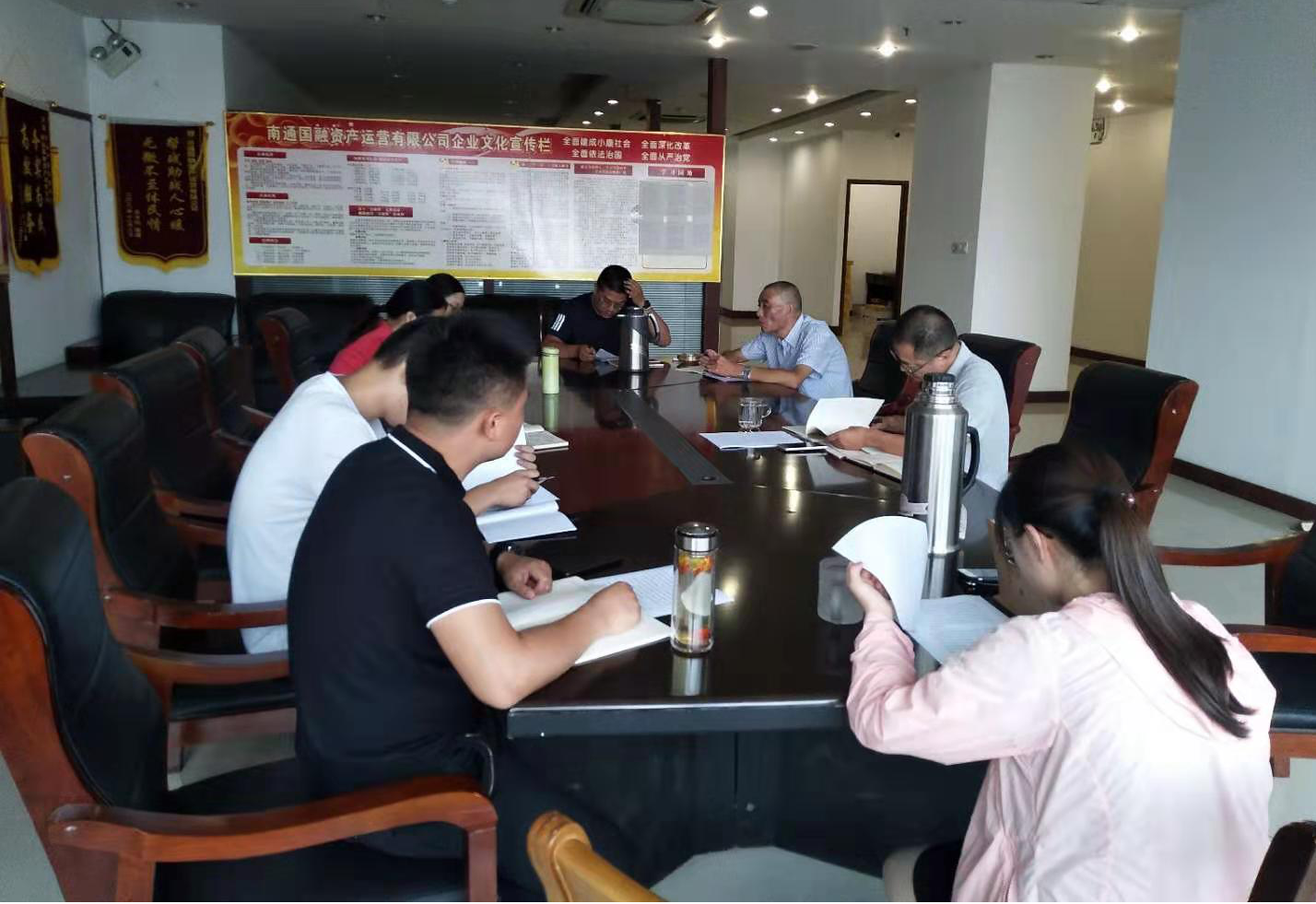 為了更好的落實(shí)公司黨委要求,進(jìn)一步加強(qiáng)黨員干部的先鋒模范作用,近日,南通國(guó)融資產(chǎn)運(yùn)營(yíng)有限公司第一黨支部以“學(xué)習(xí)黨章黨規(guī)心得體會(huì)交流”為主題,在公司黨員活動(dòng)室召開了主題黨課學(xué)習(xí)活動(dòng)?;顒?dòng)由國(guó)融資產(chǎn)支部書記瞿偉主持,黨委書記劉海兵、第一支部相關(guān)黨員及積極分子共8人參加此次活動(dòng)。
