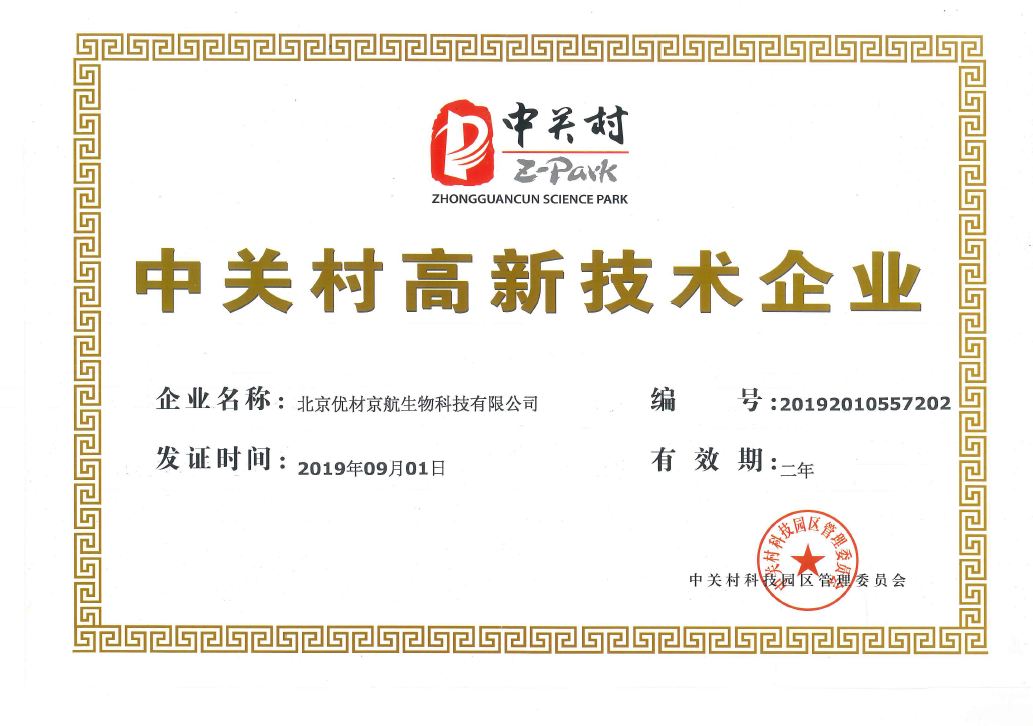 優(yōu)材京航榮獲“中關(guān)村高新技術(shù)企業(yè)”證書