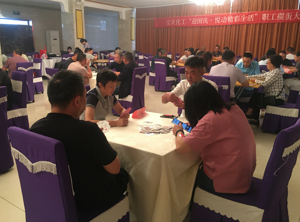 一年一度的國慶、中秋佳節(jié)將至,為慶祝新中國成立71周年,進一步提升寶靈群眾性文化活動的廣泛參與性,豐富和活躍職工的業(yè)余文化生活, 經公司黨委研究,決定繼續(xù)舉辦寶靈化工“迎國慶·悅動精彩生活”職工摜蛋大賽。各車間、部門高度重視,積極發(fā)動并踴躍報名,共有44名選手參賽。