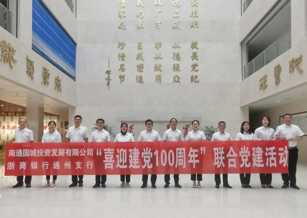為慶祝中國共產(chǎn)黨成立100周年,將“學(xué)黨史、悟思想”落到實(shí)處,6月25日,南通國城投資發(fā)展有限公司與浙商銀行通州支行開展“喜迎建黨100周年”聯(lián)合黨建活動(dòng)。