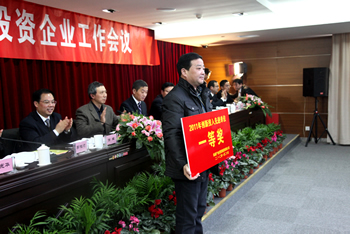 2012年元月20日,集團隆重召開投資企業(yè)年度工作會議。市政府副市長徐輝、副秘書長宗劍峰、國資委主任李桂順應邀到會,集團及投資企業(yè)領導干部共80多人出席。集團董事長、黨委書記陳照東主持大會。