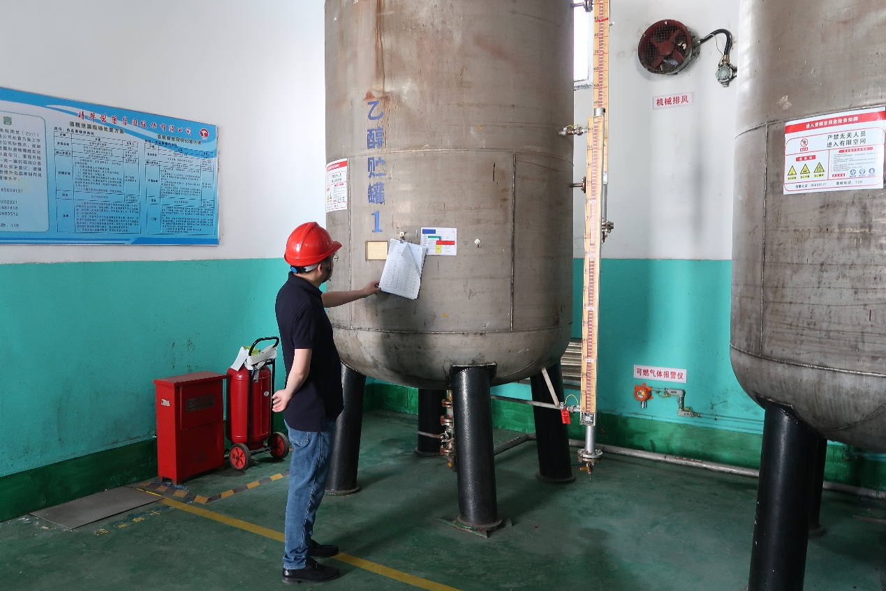 檢查組一行先行進入危險品倉庫進行檢查,成劍詳細了解了乙醇的儲存量、乙醇出入庫的管理要點、乙醇庫區(qū)的日常檢查重點等情況,成劍要求:企業(yè)要增強安全風險意識,樹立底線思維;要按照安全大檢查的要求落實好各項工作;要持續(xù)開展安全專項整治,開展回頭看,排查生產(chǎn)中可能存在的問題和薄弱環(huán)節(jié),嚴格管控安全風險,做好節(jié)假日前后安全生產(chǎn)工作。