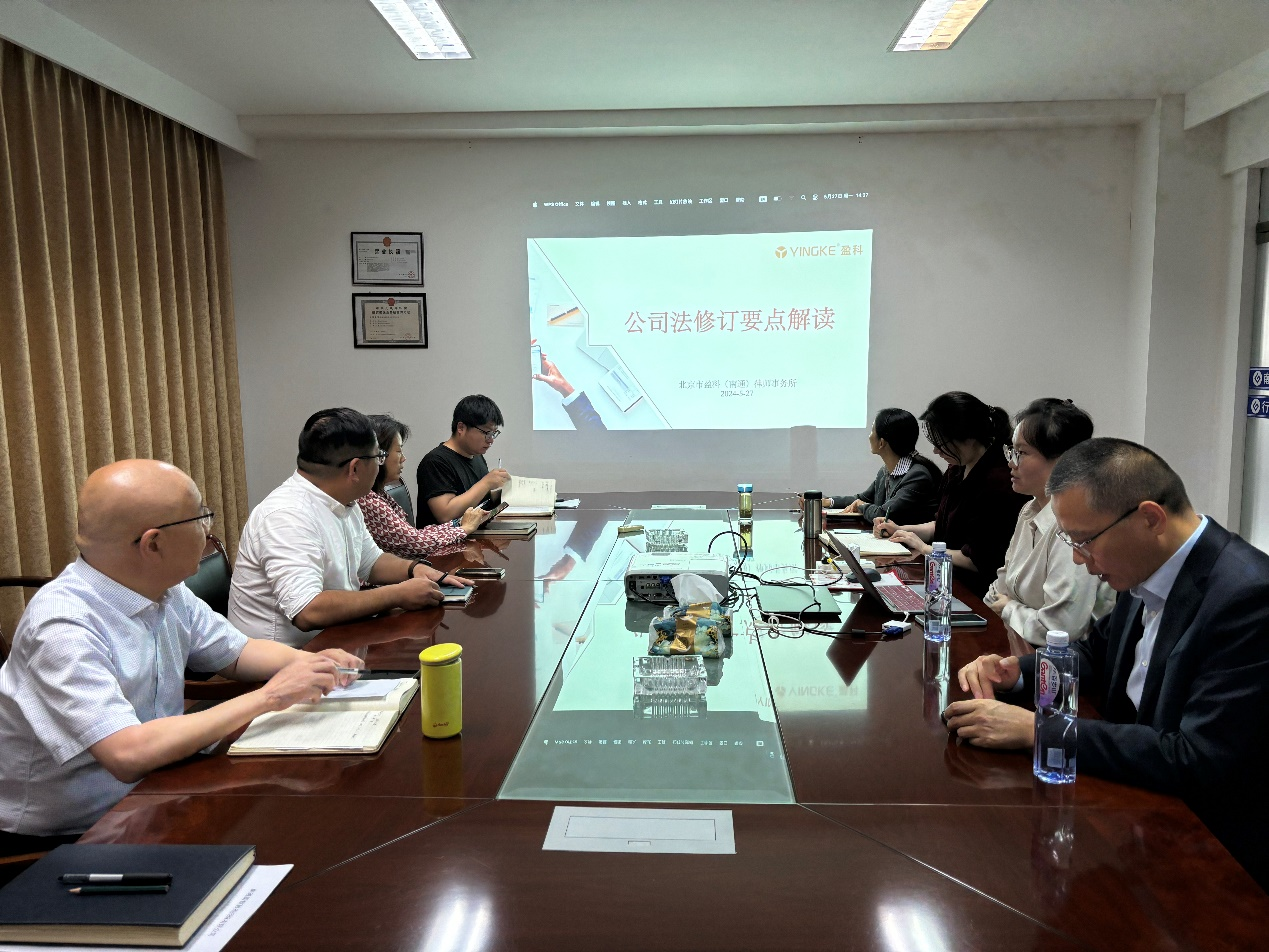 為進一步提高依法治企能力,增強公司員工的法律意識,精準把握和主動適應(yīng)新《公司法》,推進公司合規(guī)經(jīng)營管理工作邁上新臺階,公司于5月27日下午組織開展了《公司法修訂要點解讀》培訓活動,公司全體員工參加了培訓活動。 公司法律顧問單位盈科律師事務(wù)所汪秋語律師為主講人,從公司法的修訂歷程、總則部分修訂要點、有限責任公司的修訂內(nèi)容等幾個方面進行了詳細講解,并就大家現(xiàn)場提出的問題進行了深入的交流。 通過此次培訓活動,促進了公司干部職工對新《公司法》的深入理解,加深了員工對公司治理及管理要求的理解和認識,為今后工作中更好的防范法律風險,保障公司利益,推動公司穩(wěn)步發(fā)展起到了重要的作用。