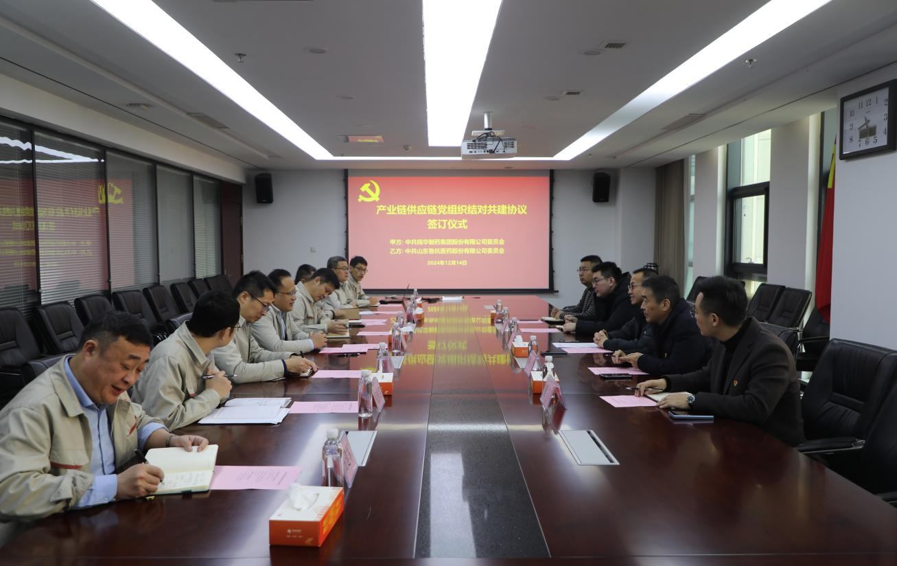 為進(jìn)一步學(xué)習(xí)貫徹黨的二十屆三中全會(huì)精神,創(chuàng)新黨建工作,以“黨建內(nèi)鏈”驅(qū)動(dòng)“產(chǎn)業(yè)外鏈”,不斷激發(fā)基層黨建活力,形成優(yōu)勢(shì)互補(bǔ)、資源共享,共同提高、合作共贏的黨建工作格局,經(jīng)前期溝通,受魯抗醫(yī)藥邀請(qǐng),12月14日,精華制藥集團(tuán)股份有限公司黨委書記、董事長尹紅宇、集團(tuán)副董事長、江蘇森萱醫(yī)藥股份有限公司董事長吳玉祥等一行5人赴山東魯抗醫(yī)藥股份有限公司開展黨建共建活動(dòng)。